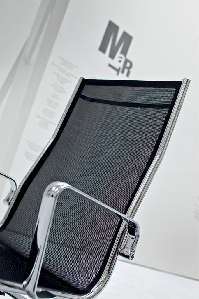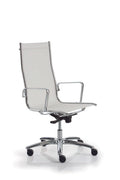 Executive in mesh, high backrest, with chromed aluminum armrests, tilt or decentrated multiblock mechanism, polished aluminum base.