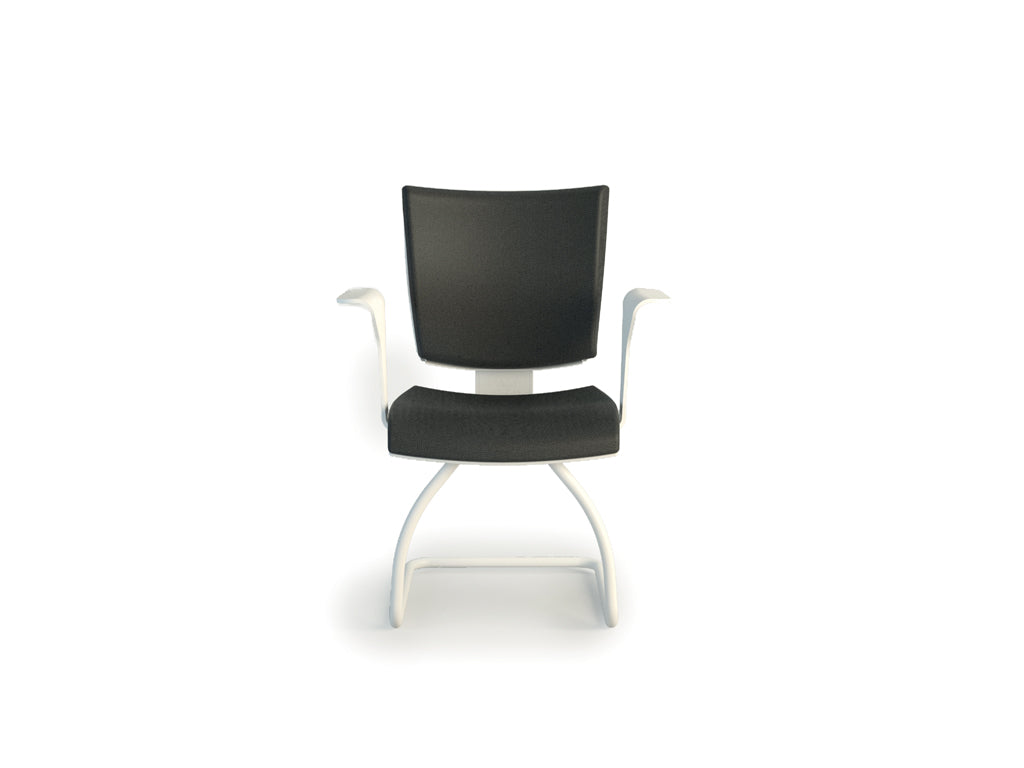 Visitor chair, medium-high backrest, backrest plastic blade, plastic backrest detailing, fixed armrests, painted structure.