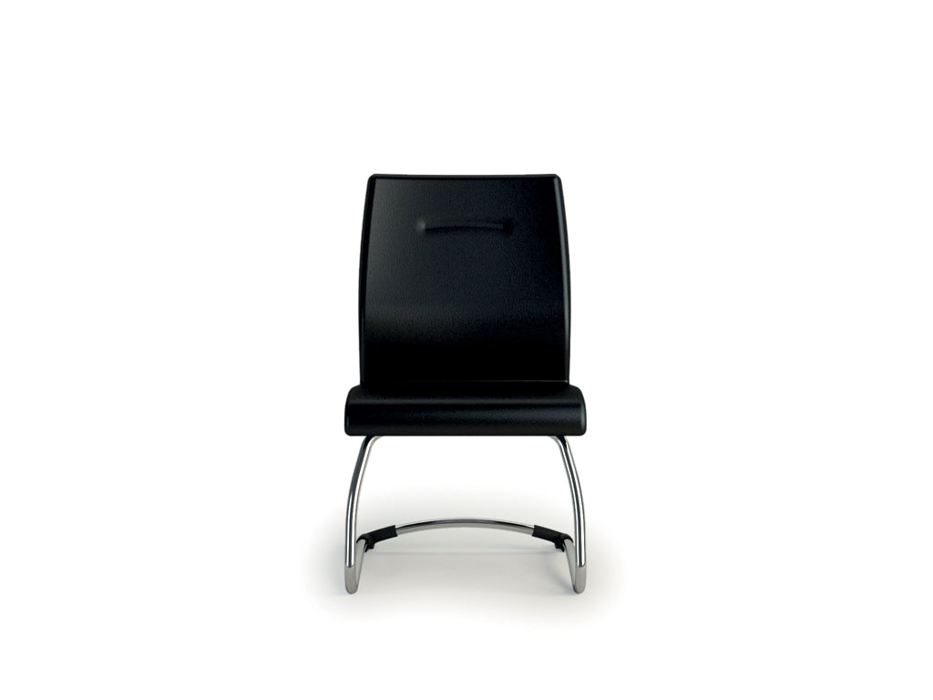 Youster is one the Luxy's solutions for the office or home studio. The inner frame is made of plywood, padded with polyurethane and upholstered with leather, faux leather or fabric from Luxy's catalogue. The sled base is, instead, made of die-cast aluminium with glossy chromed finish. This Youster version is available without or with armrests, made of black polyurethane or glossy lacquered.