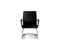 Visitor chair, medium-high backrest, with black polyurethane armrests, chromed structure.