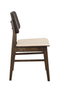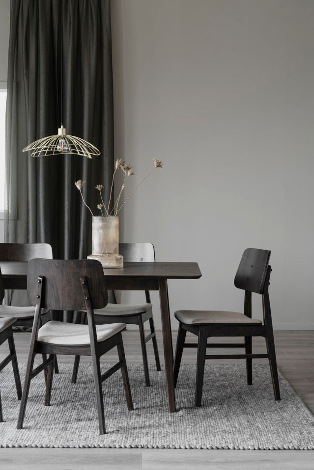 Nagano chair in solid brown lacquered oak with seat in beige fabric. A stylish, comfortable, and stable chair. The chair is part of the Nagano series and is available in several colors. The series also includes a dining table. Sold only in 2-pack.