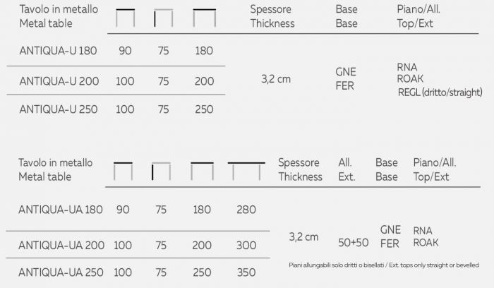 Extremely versatile, Ubique is a collection of tables with a strong personality and with a high level of customization possible for the top. The top, fixed or extendable, is in solid wood and is available in rustic knotted oak (natural or antique) with a thickness of 3.2 cm. Furthermore, the edges, according to tastes, can be straight, debarked, beveled or crossed. UA tables are also available extendable, with two 50 cm extensions (straight and beveled edge only). Discover also the new light gray resin-coated walnut wood, available for fixed tops with straight edges.