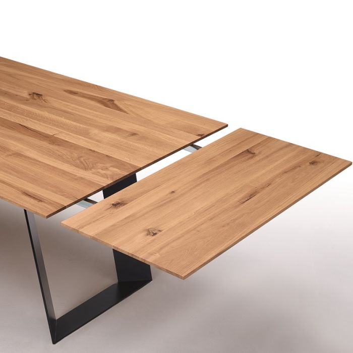 Bridge's innovative base makes it a modern table with an original design. Available both fixed and extendable, it has a solid wood top in different sizes. Very precise and essential lines for the two semi-bases that compose it and which resemble two bridges upside down, hence its name.