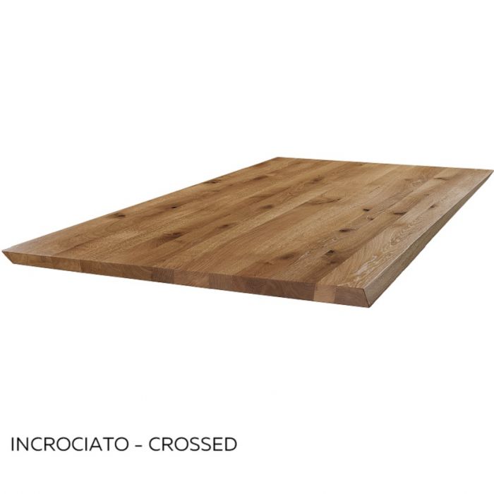 Extremely versatile, Ubique is a collection of tables with a strong personality and with a high level of customization possible for the top. The top is in solid wood and is available in rustic knotted oak (natural or antique) with a thickness of 3.2 cm. Furthermore, the edges, according to tastes, can be straight, debarked, beveled or crossed. Discover also the new light gray resin-coated walnut wood, available for tops with straight edges.