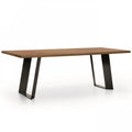 Extremely versatile, Ubique is a collection of tables with a strong personality and with a high level of customization possible for the top. The top is in solid wood and is available in rustic knotted oak (natural or antique) with a thickness of 3.2 cm. Furthermore, the edges, according to tastes, can be straight, debarked, beveled or crossed. Discover also the new light gray resin-coated walnut wood, available for tops with straight edges.