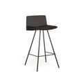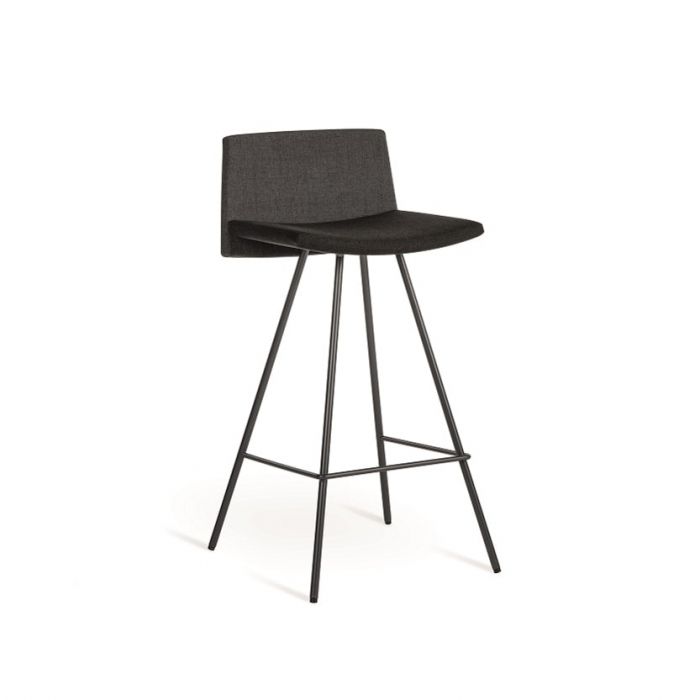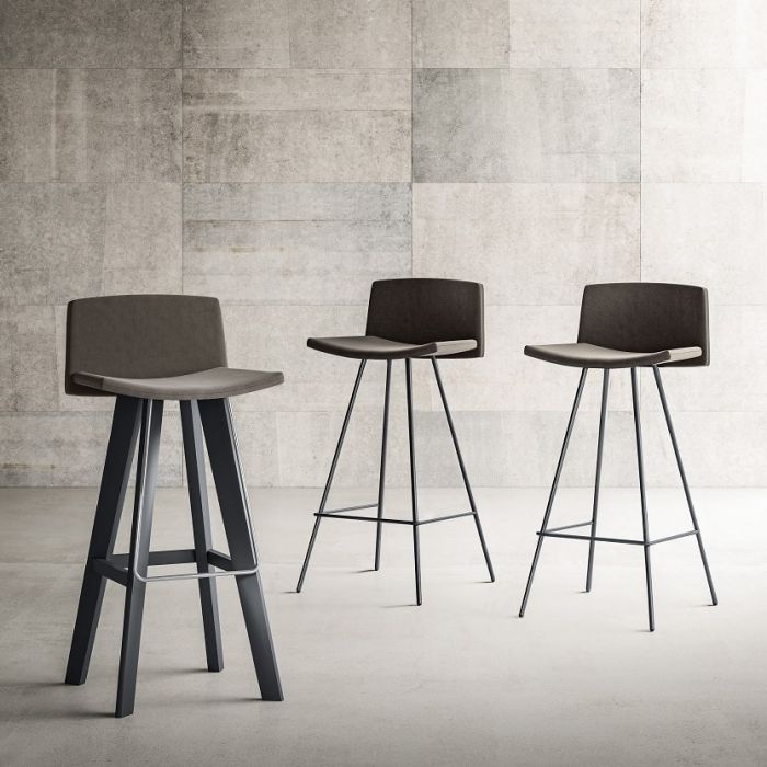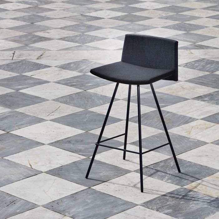 The colors of the seat and back upholstery can play in contrast, in this stool that combines minimalism and liveliness; it adapts to any environment, thanks to the many shades to choose from among different fabrics and the available colors of the structure.