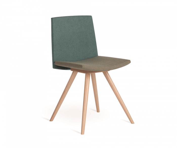 The colors of the seat and backrest upholstery can play in contrast, in this chair that combines minimalism and liveliness; it adapts to any environment, thanks to the many shades to choose from among different fabrics and the available colors of the structure.