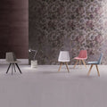 Strong and modern in its lines, Glim has a metal or beech wood frame with the characteristic visible legs in different trendy finishes.