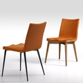 Comfortable beyond measure. Haru is an ergonomic masterpiece chair. Just look at its seat from the front: a central depression helps to arrange the legs perfectly, as happens when sitting on a saddle, thus increasing comfort. Chair and backrest can be upholstered in velvet, fabric or with a double fabric: one for the combination of seat / backrest and another different for the back of the backrest. Two bases available, in wood or metal.