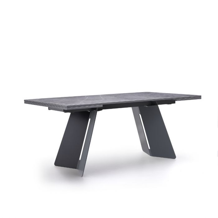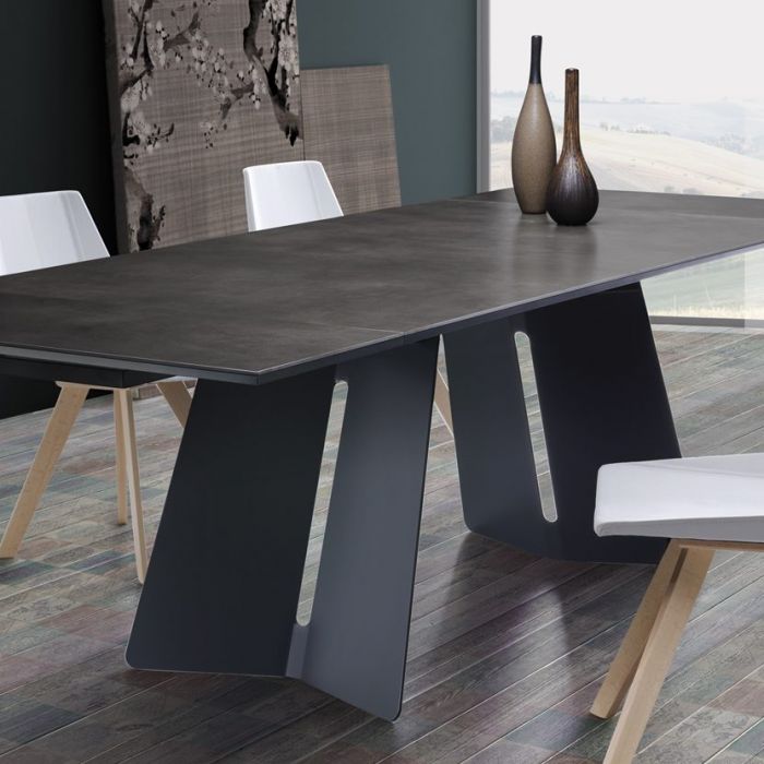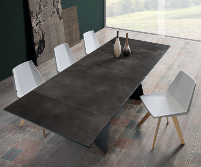 TA rectangular top lays on the important metal frame, available in porcelain stoneware. A modern and clean table, easily extendable.