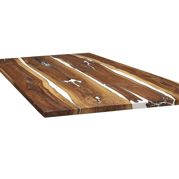 Extremely versatile, Ubique is a collection of tables with a strong personality and with a high level of customization possible for the top. The top, fixed or extendable, is in solid wood and is available in rustic knotted oak (natural or antique) with a thickness of 3.2 cm. Furthermore, the edges, according to tastes, can be straight, debarked, beveled or crossed. UA tables are also available extendable, with two 50 cm extensions (straight and beveled edge only). Discover also the new light gray resin-coated walnut wood, available for fixed tops with straight edges.
