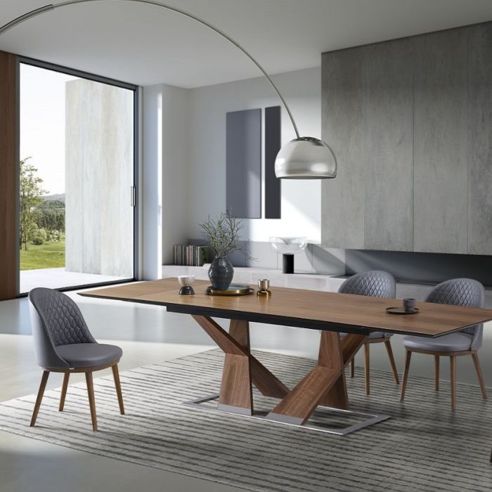 The timeless elegance of quilted fabric. In the Lois chair this refined faux leather processing of the front of the back becomes its business card. Its curved backrest which is smooth in the back also wraps the seat on the sides, inviting you to relax. Lois is available with three wooden structures and one in metal.