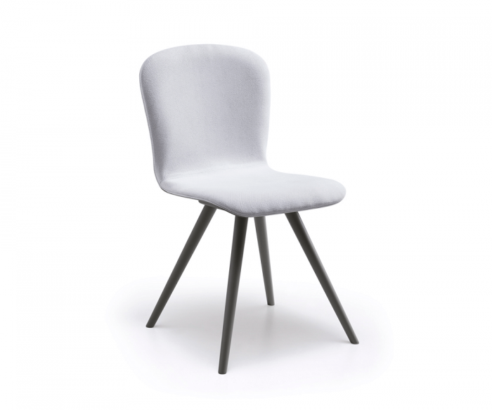 Wood and fabric happily meet in the Maya chair. On a single wooden shell that shapes the back of the backrest and the lower part of the seat, the padding is applied with the upholstery available in various fabrics. In the conjunction of the two elements, an elegant ribbed stitching stands out which makes the chair even more original, which can have a metal or wooden sled base.