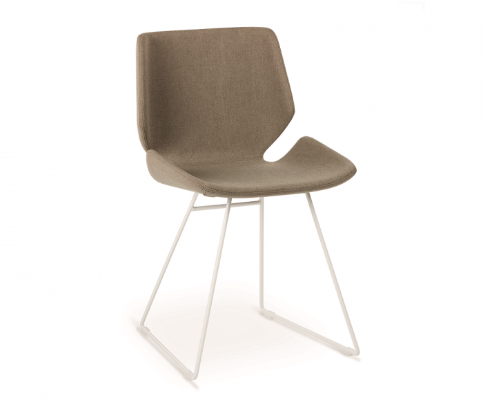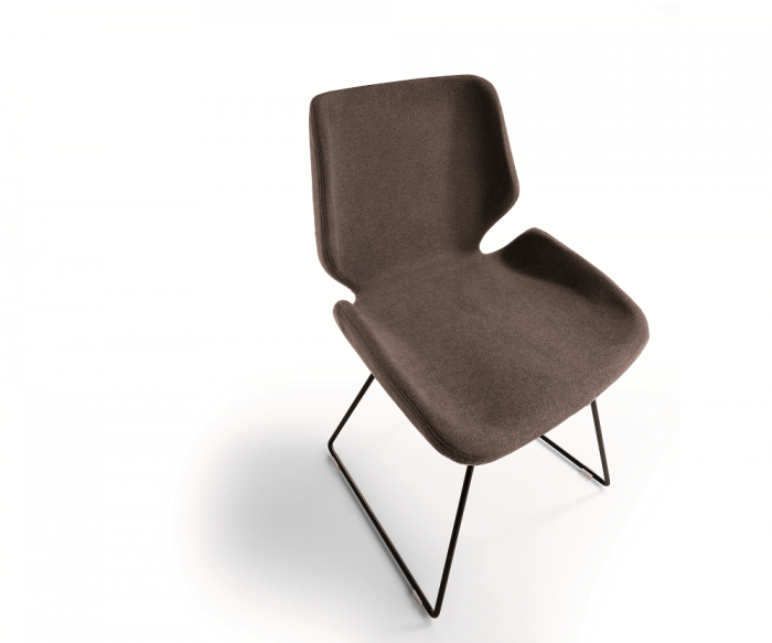 The construction of the frame and legs is very original, also finished in beech. The particular design of the shell is enhanced by the beautiful colors of the upholstery, available in different fabrics.