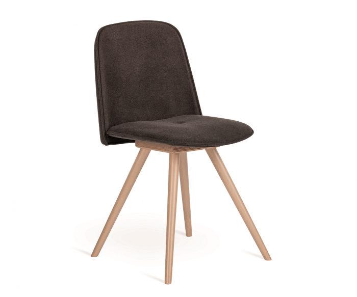 A softness that welcomes and makes you feel comfortable: Molly has a shell that can be covered in eco-leather or in fabrics including a pleasant fire-retardant wool, all offered in elegant shades. The visible legs are in wood or metal, available in different colors.