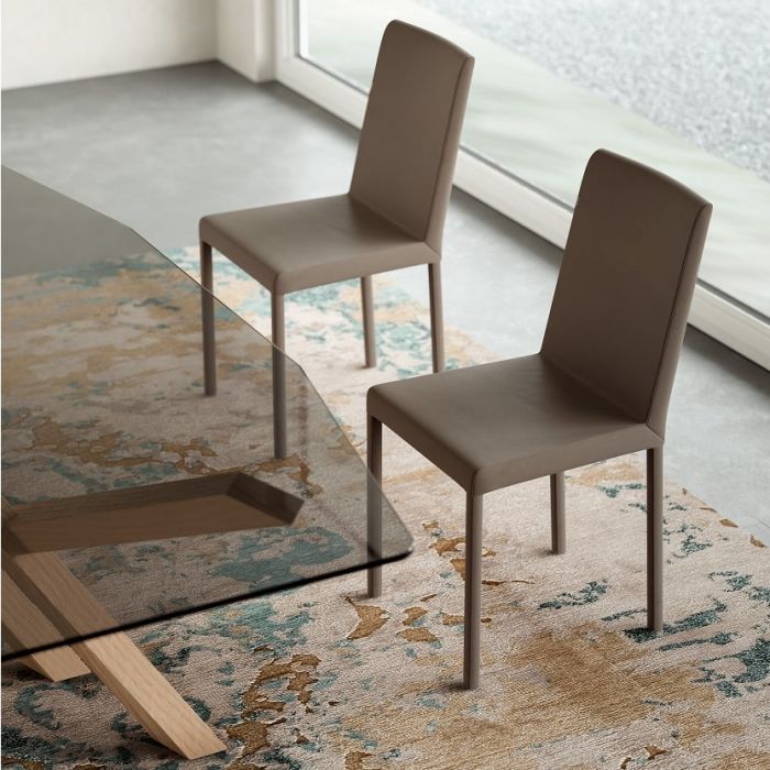 Essentiality and variety characterize this slim line chair: the legs can be exposed in metal, or completely covered like the shell, with an effect of elegant continuity.