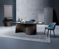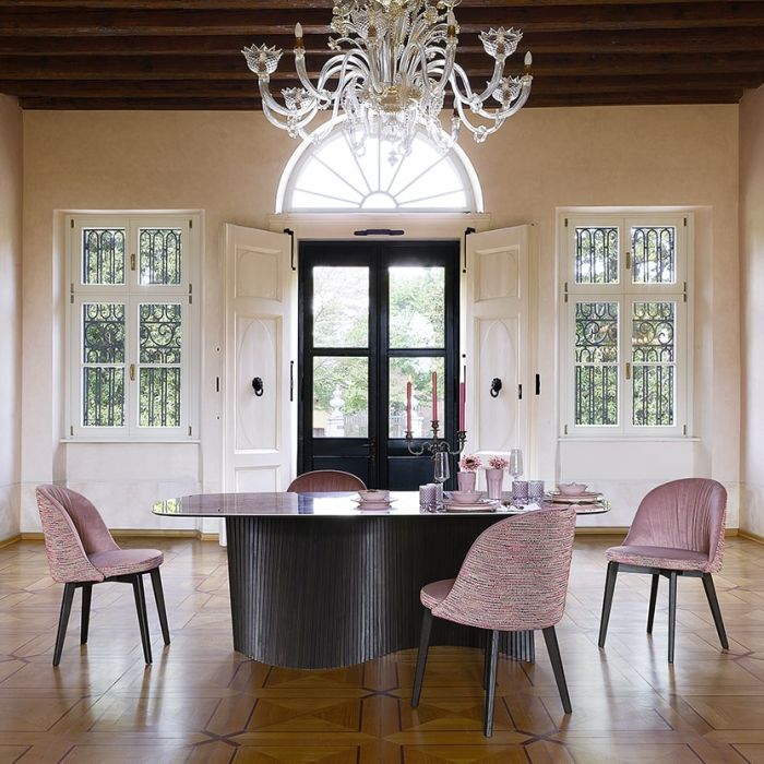 Seen from above, the base recalls the fascinating lunar orbit, hence its name. Three ash wood finishes provided for the base, made up of over 70 strips. The top, on the other hand, can be in glass or glossy and opaque ceramic.