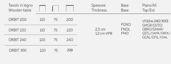 The Natisa Orbit 240 Table is designed with the following dimensions: