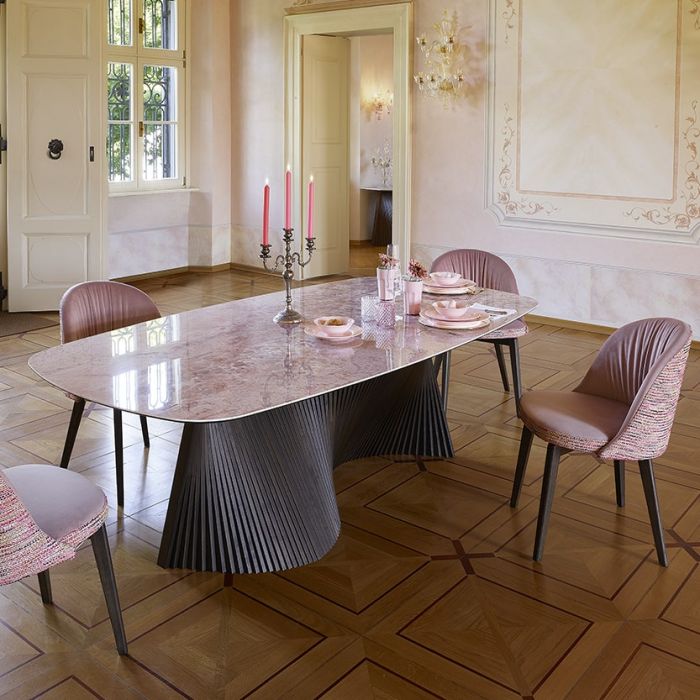 The Orbit oval design table in marble stands out with its sculptural shape, robust materials, elegant lines, and refined finish. This award-winning table collection seamlessly blends design and craftsmanship, making it a centerpiece in any sophisticated space.