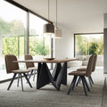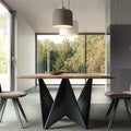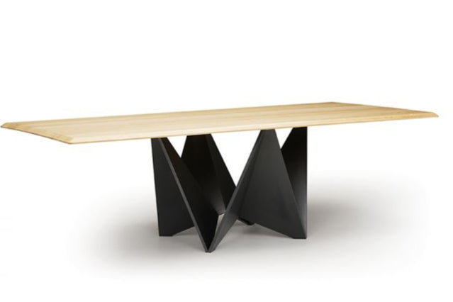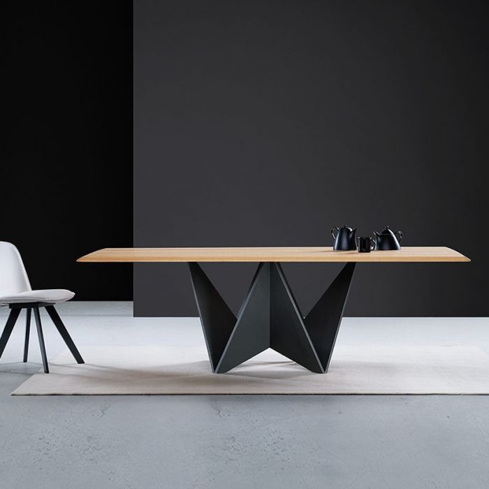 ORIGAMI-M 200/220: In this fixed version of the Origami table, the metal base is available in a black gray or brushed bronze lacquered finish for the 200 model. The top is available in stoneware, veneer and solid oak or in the elegant version in beveled smoked glass, which highlights all the peculiarity of the structure.