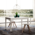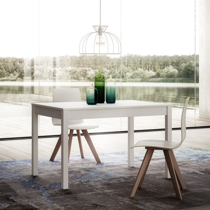 Trendy finishes and a clean design, so much so that it doesn't even look like an extendable table. Polar is studied in detail to be beautiful to look at, thanks to the original variants provided for the melamine and the original shape of the leg, and at the same time practical to use, having an easy one-sided opening and an internal wooden support that gives stability to the plan.