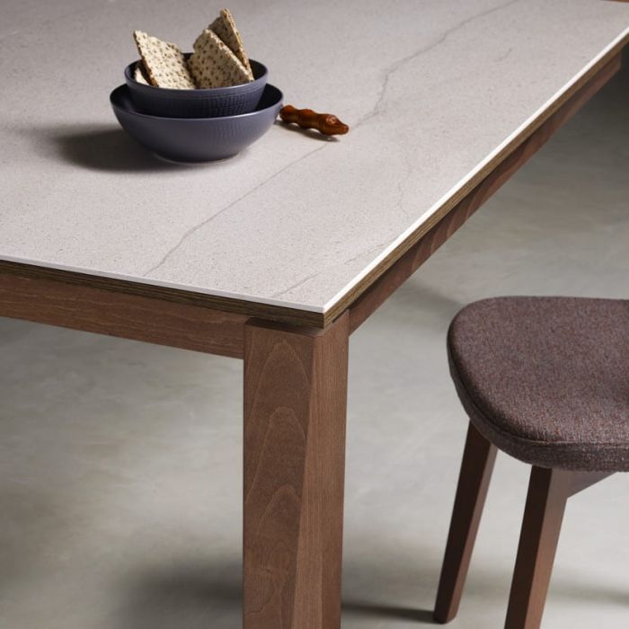 It is the essential and versatile table that lives in any environment, available in different sizes and color finishes. The structure is in beech wood while the top and extensions are also in veneer. Vigo is a practical extendable table with head opening.