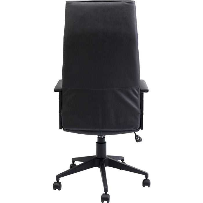 Please turn around! The upholstered office swivel chair Labora High in black impresses with its functions: it rotates, tilts and is height adjustable. In addition Labora offers an extra-high backrest, a timelessly beautiful design and a hard-wearing cover in the vintage leather look. The resistance of the tilt mechanism of the backrest can be individually adjusted to your physical requirements. The stylish office favourite moves smoothly on five high-quality castors. This office chair makes work much more enjoyable! Labora is available in many variations from the shop.