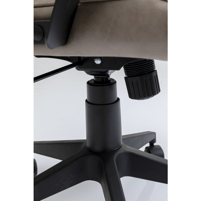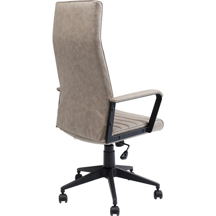 Please turn around! The upholstered office swivel chair Labora High in grey impresses with its functions: it rotates, tilts and is height adjustable. In addition Labora High offers an extra-high backrest, a timelessly beautiful design and a hard-wearing cover in the vintage leather look. The resistance of the tilt mechanism of the backrest can be individually adjusted to your physical requirements. The stylish office favourite moves smoothly on five high-quality castors. This office chair makes work much more enjoyable! Labora is available in many variations from the shop.