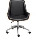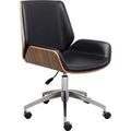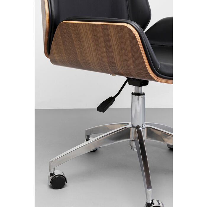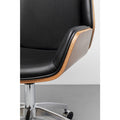 - Black office chair with castors in a modern shell shape with real walnut wood