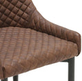 Transform your dining space with the stylish and versatile Ottowa Kitchen Chair in PU Leather Brown. Designed with intricate inner harlequin stitching on the seat and backrest, and supported by sleek round black sanded metal legs, this chair blends effortlessly with traditional and contemporary dining room décor.