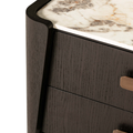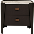 Elevate your bedroom with the Rhodes 2 Drawer Bedside Table in Ebony — a statement piece of modern luxury. Finished in rich ebony with striking copper metal handles, this elegant table blends timeless design with contemporary flair. The sintered stone top offers superior stain and scratch resistance, combining beauty with everyday durability. With two spacious drawers for convenient storage, it’s the perfect balance of style and practicality for refined interiors.