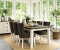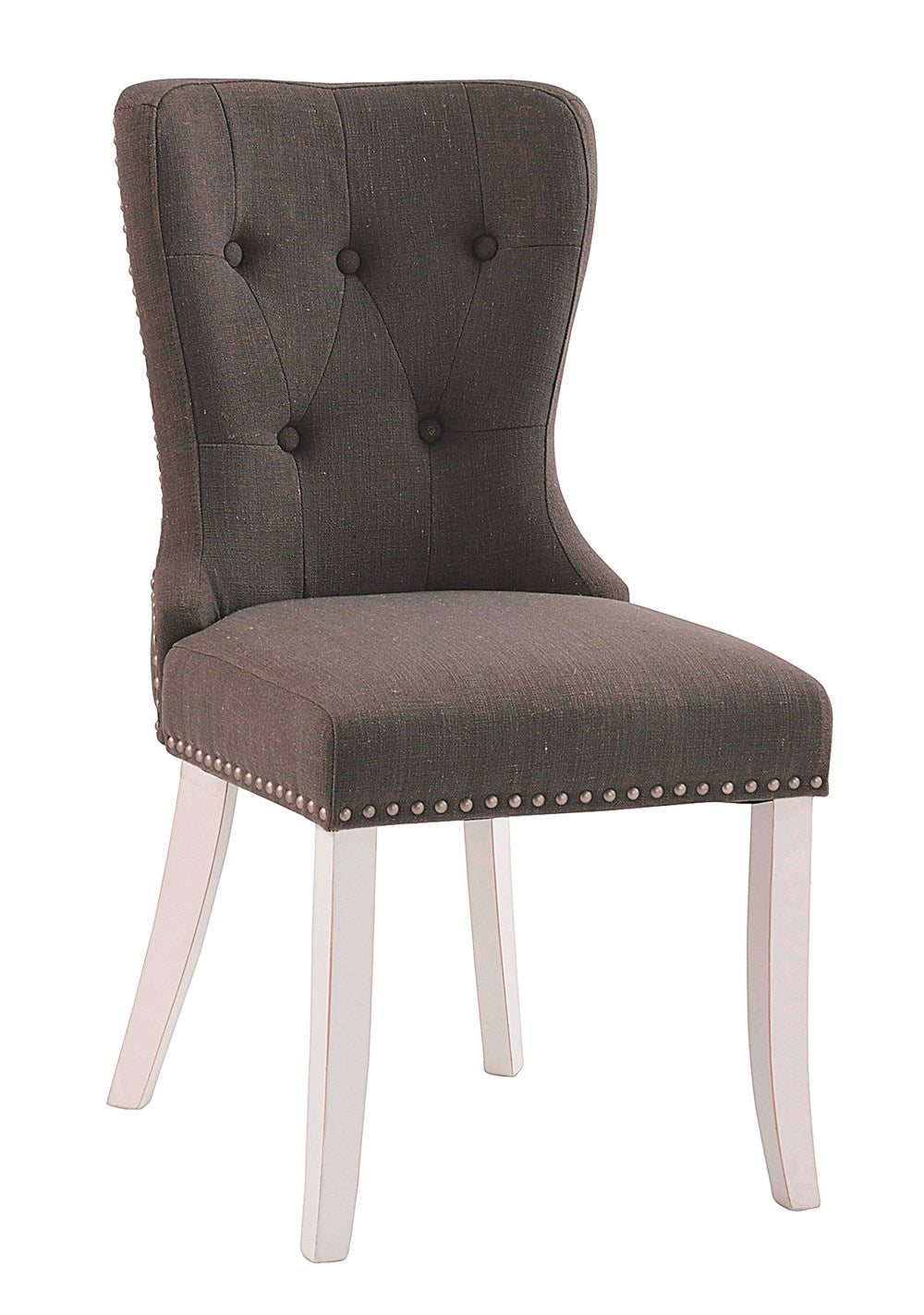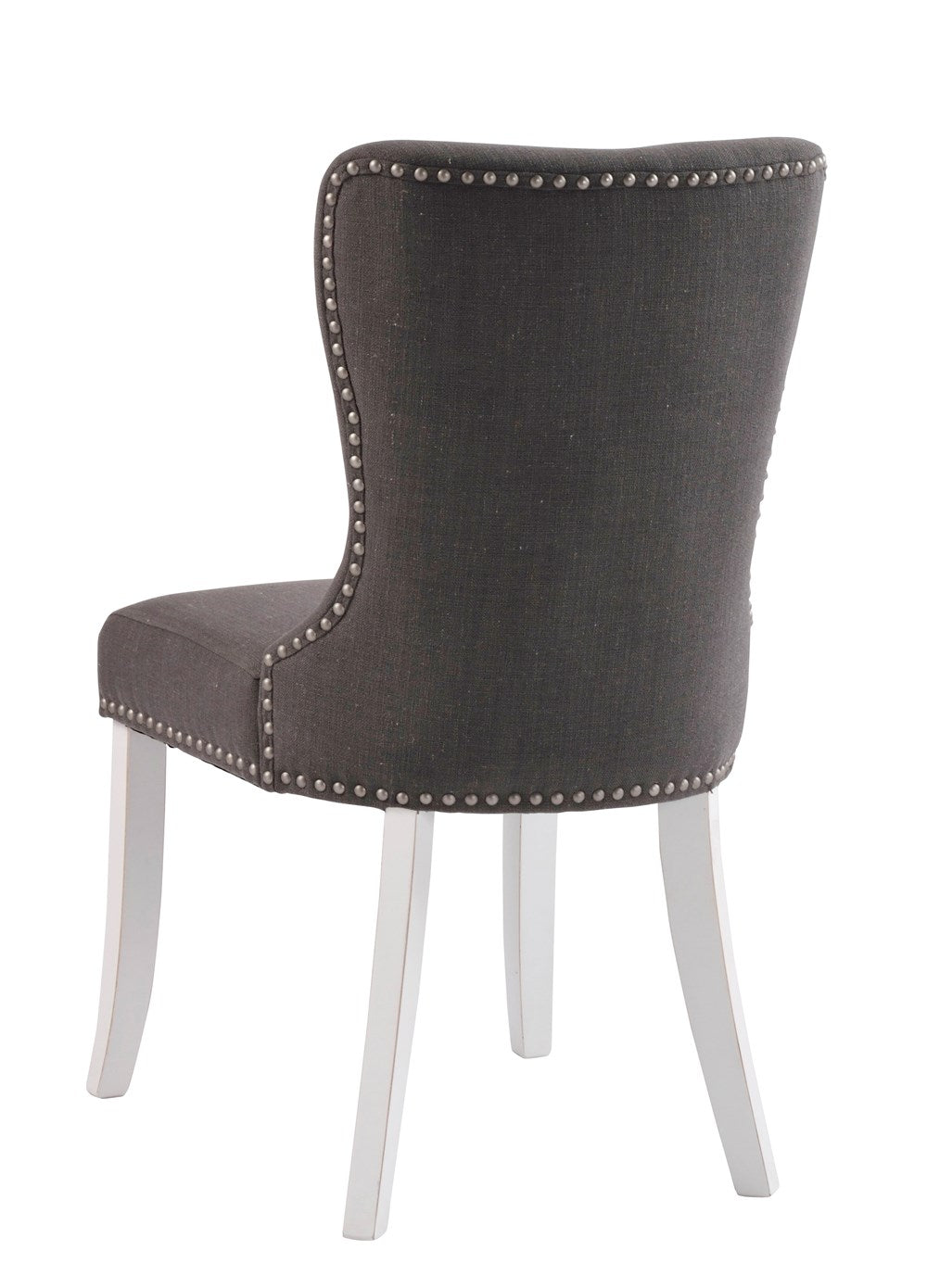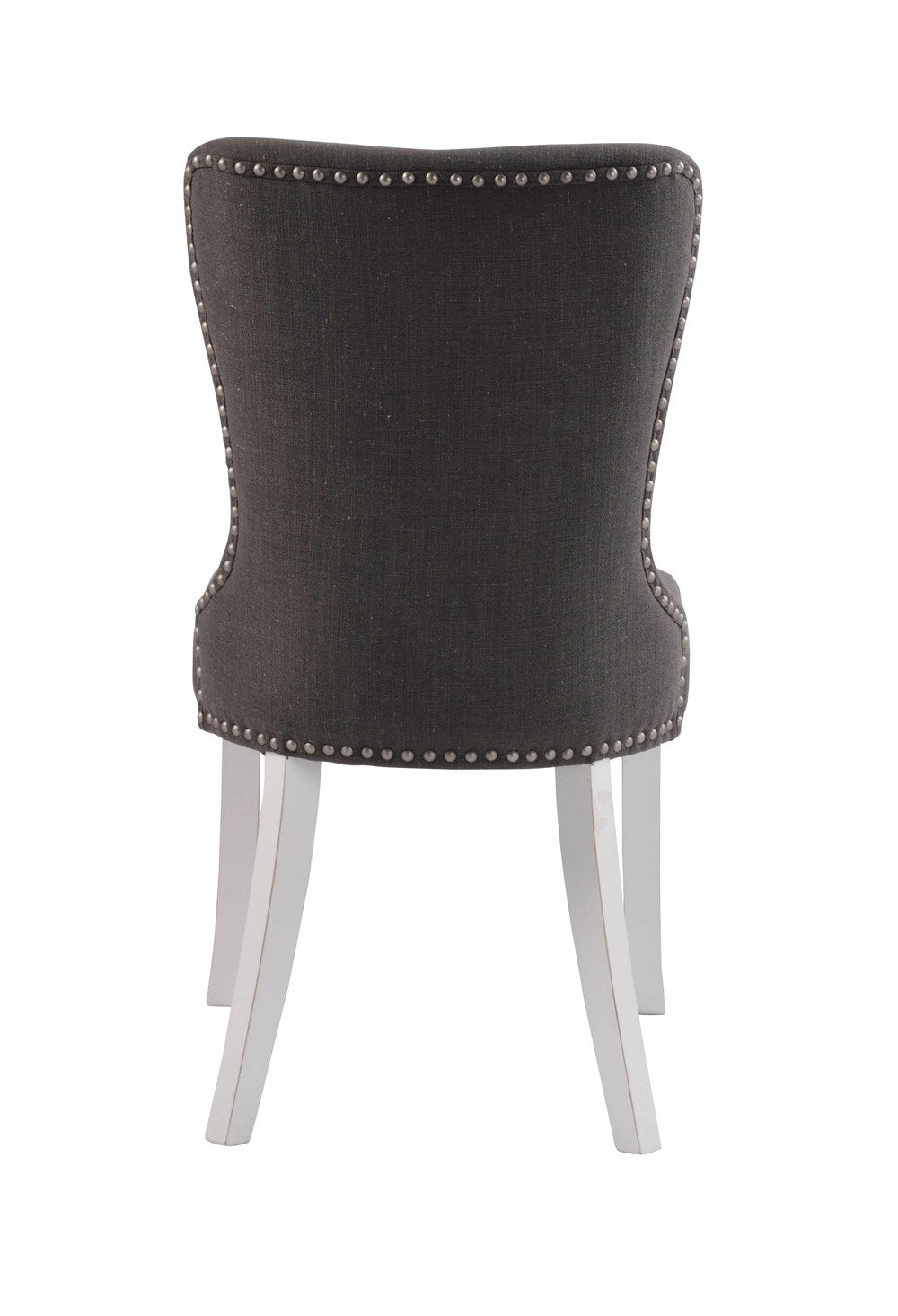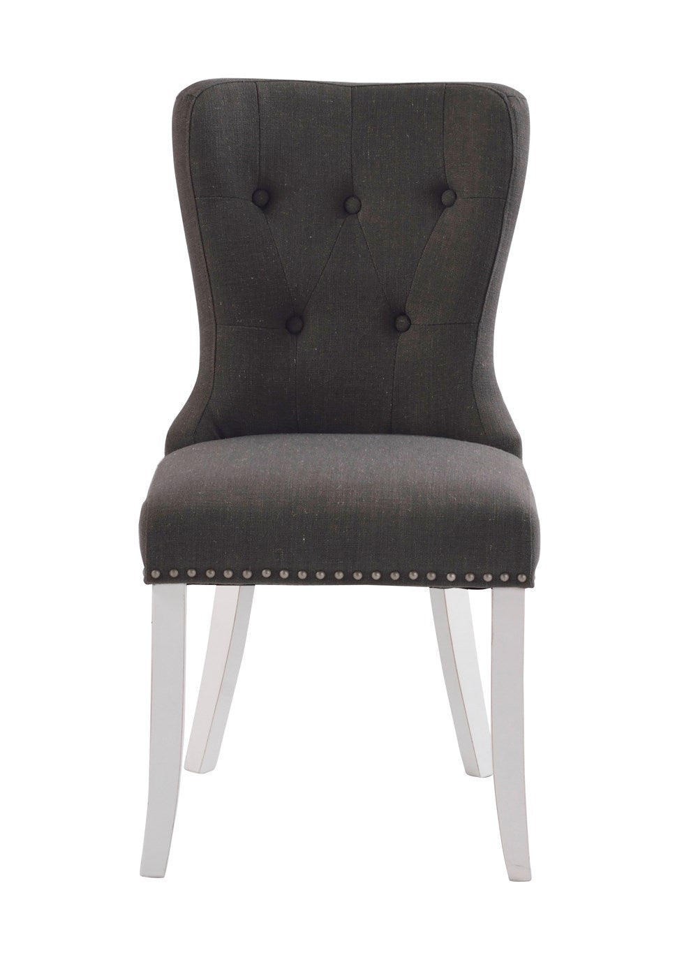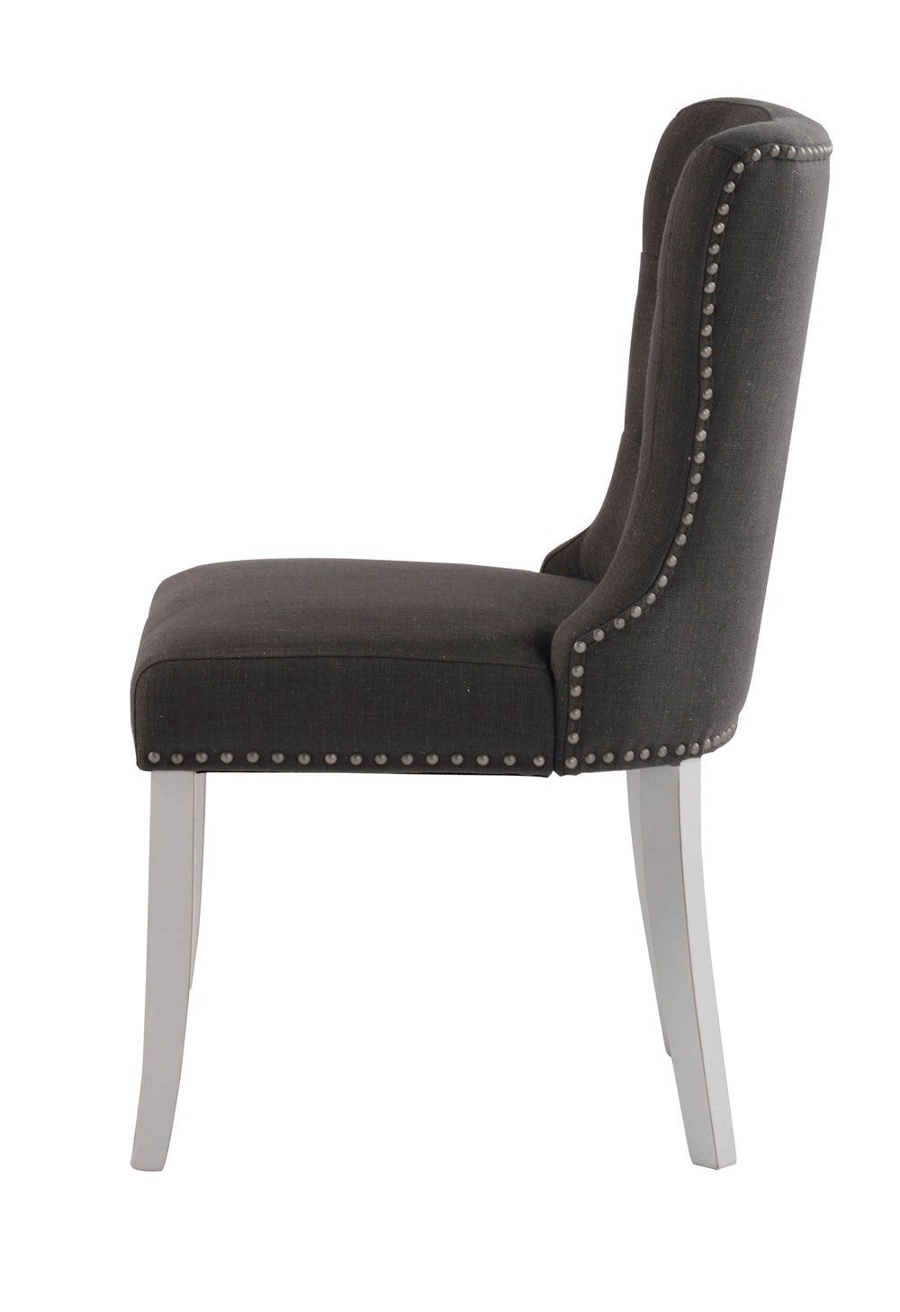 Adele chair is timeless and elegant with upholstered seat and white lacquered legs in solid wood. The seat of the chair has decorative rivets and buttons in the back. Included in our series Adele.