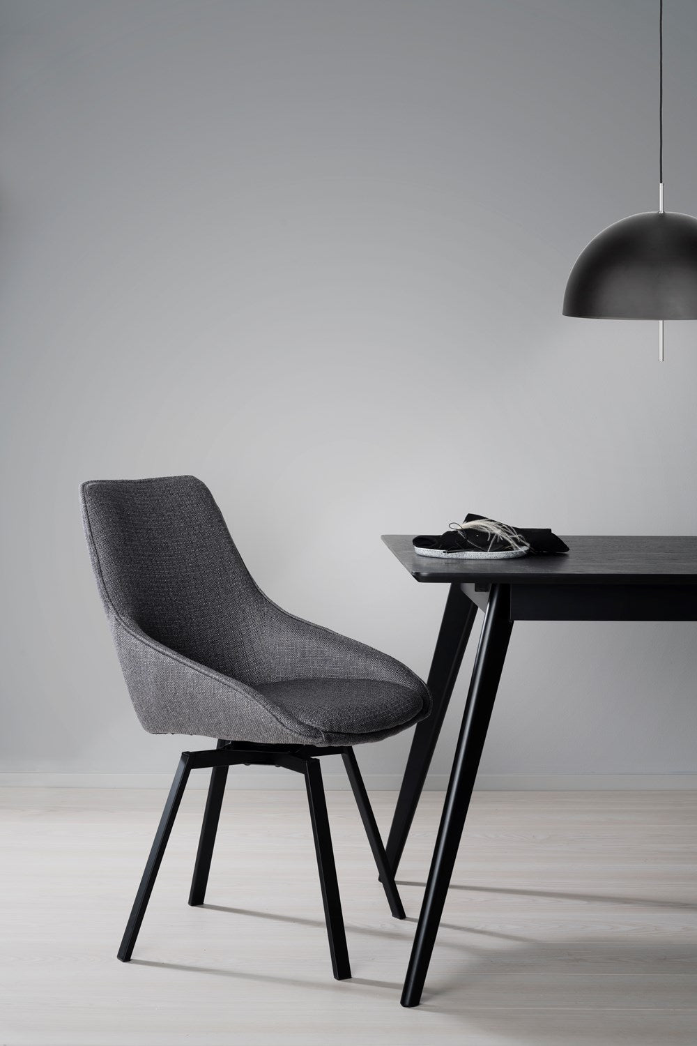 Alison grey swivel chair with powder coated black metal legs. Padded seat in cupped design. A stylish chair designed by us at Rowico. The chair is included in the series Alison and is also available in beige.