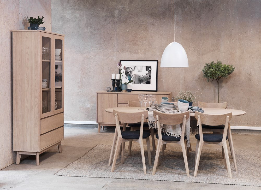 Ami chair in solid whitewashed oak with seat in dark grey felt fabric is a classic wooden chair in Scandinavian design. The neat and timeless design makes Ami one of Rowico Home's most popular chairs. Available in several colours.