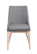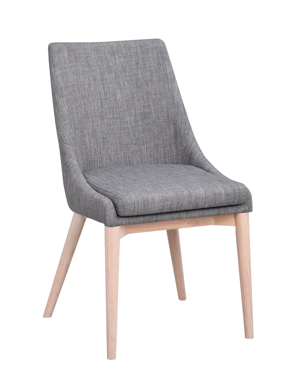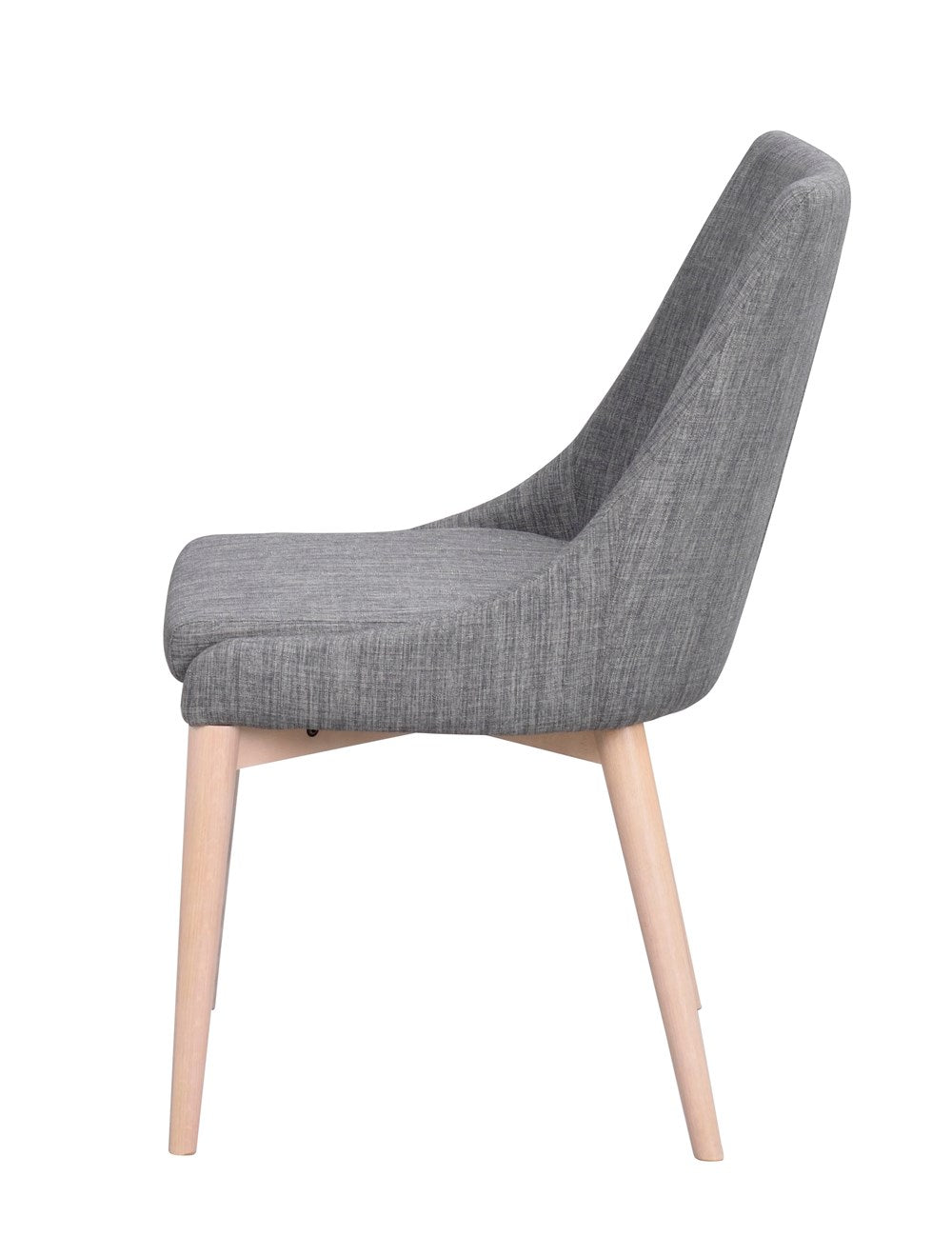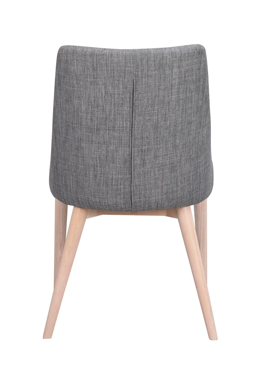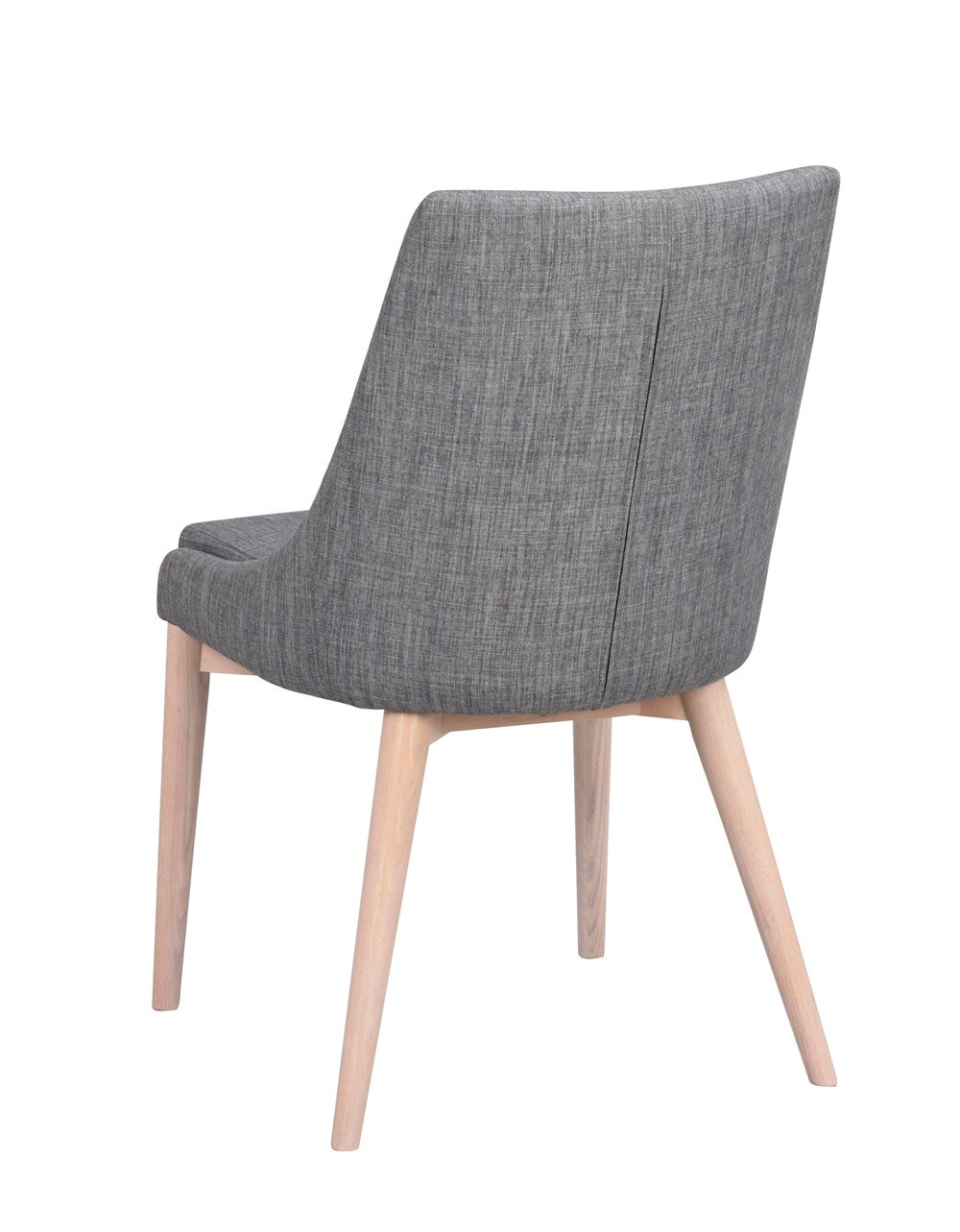 Stylish chair in modern design with upholstered seat in dark gray fabric and reversible cushion. Legs in lacquered and white pigmented solid oak. The chair is part of our series Bea.