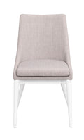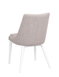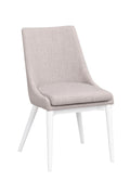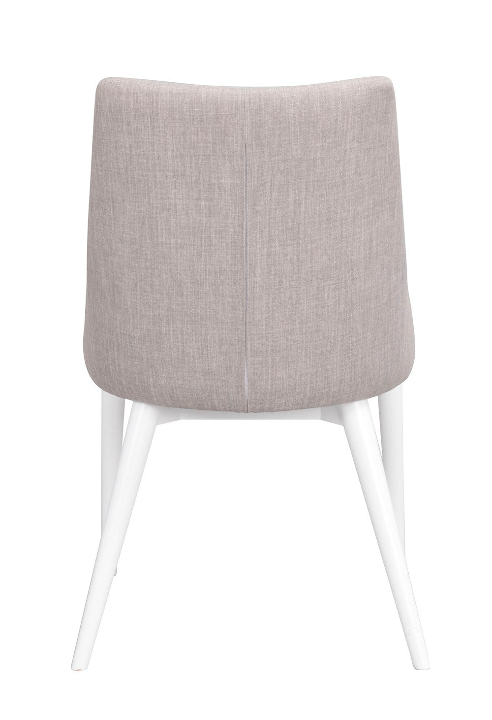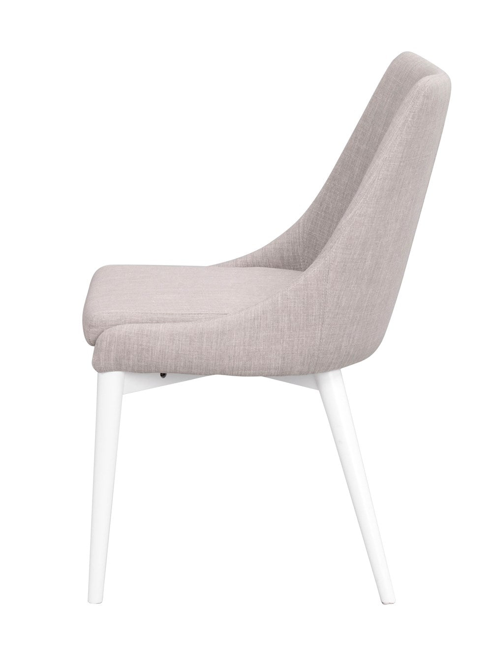 Stylish chair in modern design with light gray seat and reversible cushion. Legs in white lacquered solid rubber wood. The chair is part of our series Bea.