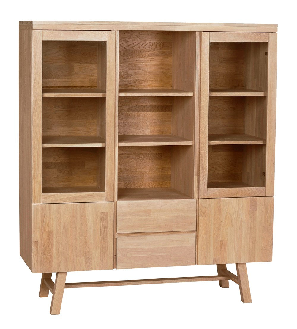 Stylish cupboard in Scandinavian design with soft-closing drawers and hatches. Lacquered cabinet in solid, finger-jointed oak with slightly exposed legs. The cabinet is part of our Brooklyn series.