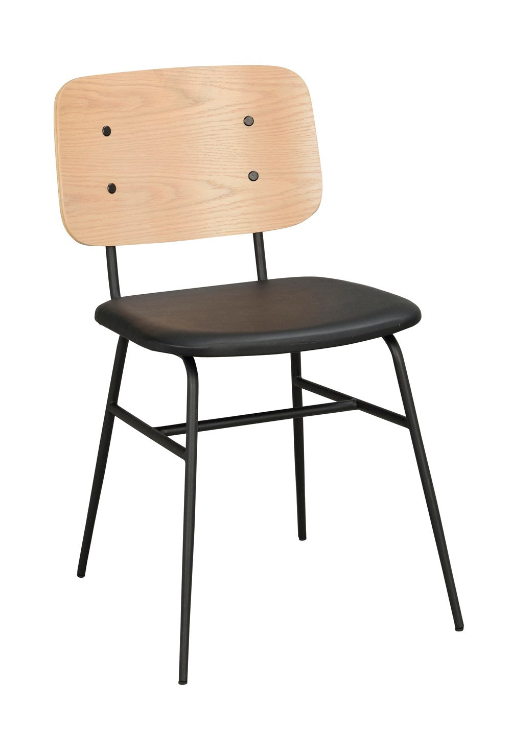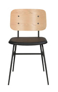 Burnt chair in black and oak. Back washer in lacquered oak veneer and upholstered seat in artificial leather. Black frame and legs in round steel where the legs have a tapered effect. Stylish and trend-safe chair included in our series Brent.