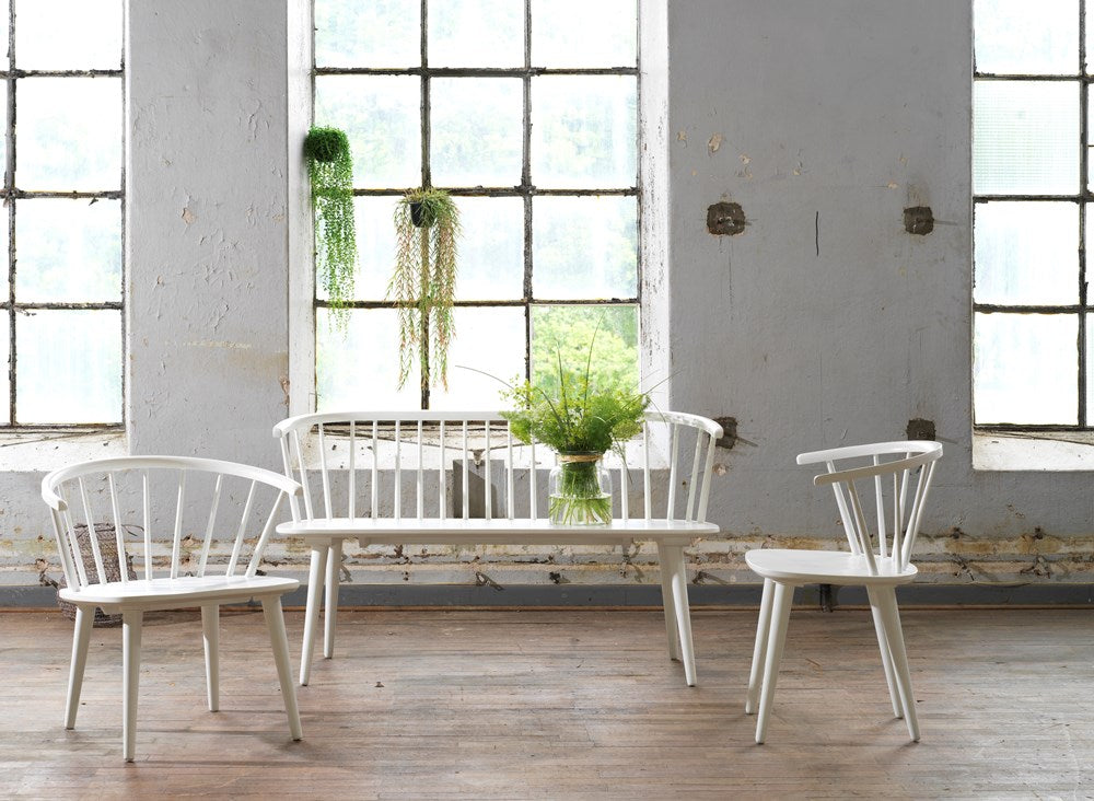 Carmen is an elegantly-shaped, wooden Windsor-type chair. The spindles radiating from the solid seat give the chair stability and presence. A design that works well with many different types of tables in various settings.