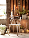 Carmen is an elegantly-shaped, wooden Windsor-type chair. The spindles radiating from the solid seat give the chair stability and presence. A design that works well with many different types of tables in various settings.