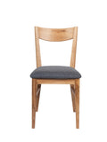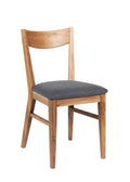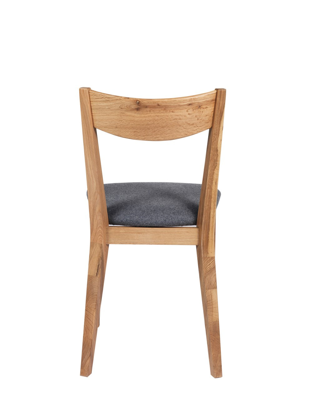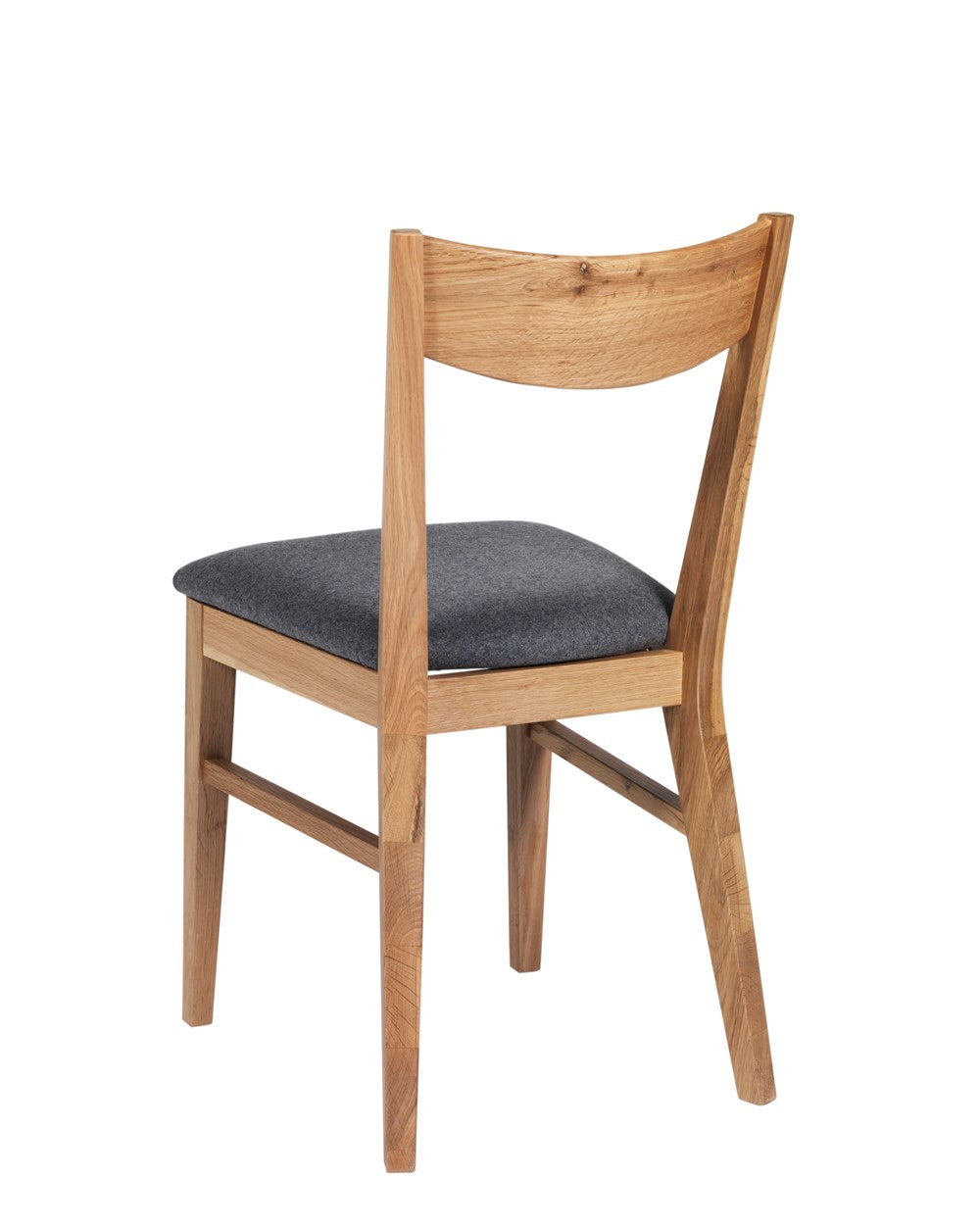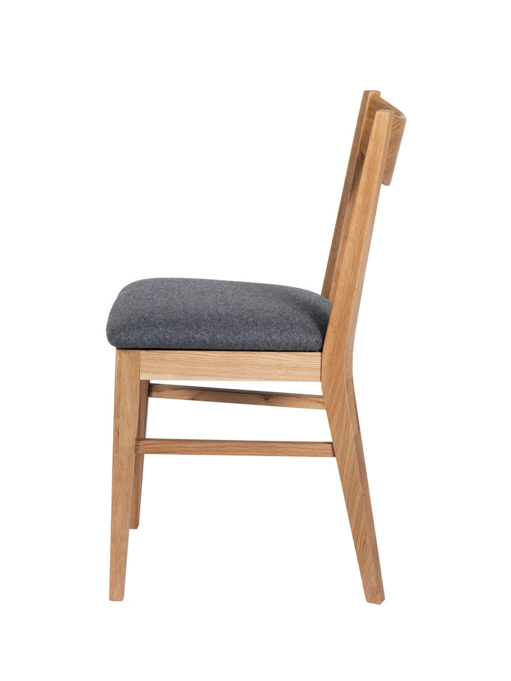 Wooden chair in timeless design with upholstered, upholstered seat in light gray felt fabric. Wooden frame in lacquered solid oak. The chair is part of our series Dylan.