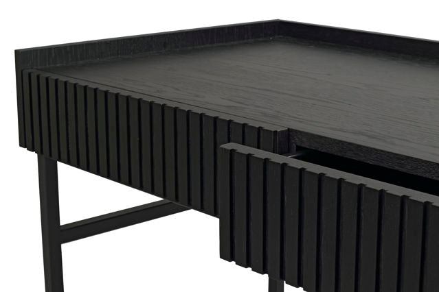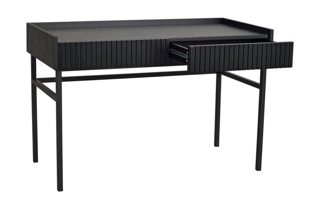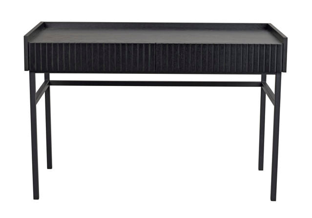 Halifax desk fits perfectly in the stylish home office or as a dressing table in the bedroom. In the desk, there are two drawers with hidden holes where you choose whether you want to put the included gold-colored knobs in brushed metal. The desk also has a practical frame around the back of the table top that creates privacy and protection for paper and other things. Feel free to combine the Halifax desk with storage in the same series for an elegant overall impression.