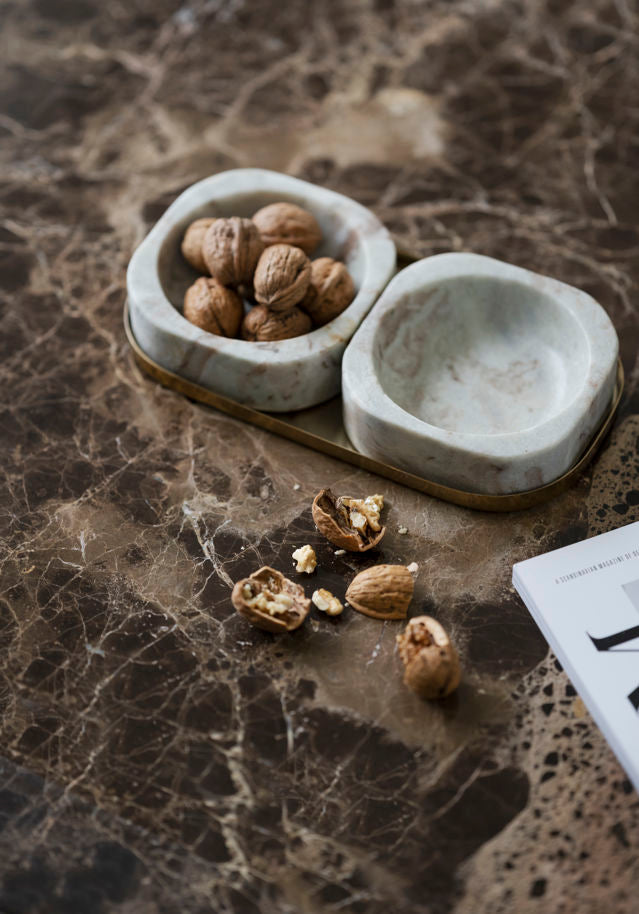 Hammond coffee table with table top of genuine Emperador marble and legs in whitewashed oak is a luxurious and trendy coffee table. The coffee table is part of the FSC-certified and flexible Hammond series where you design the coffee table the way you want it by choosing several different bases and a table top in marble or wood. Feel free to combine with other furniture in the Hammond series. Note that marble is a natural stone material, which means that colour deviation and uneven surface can occur.