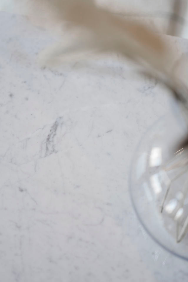 Material: Solid oak, full lamellas in base, genuine Carrara marble in top.