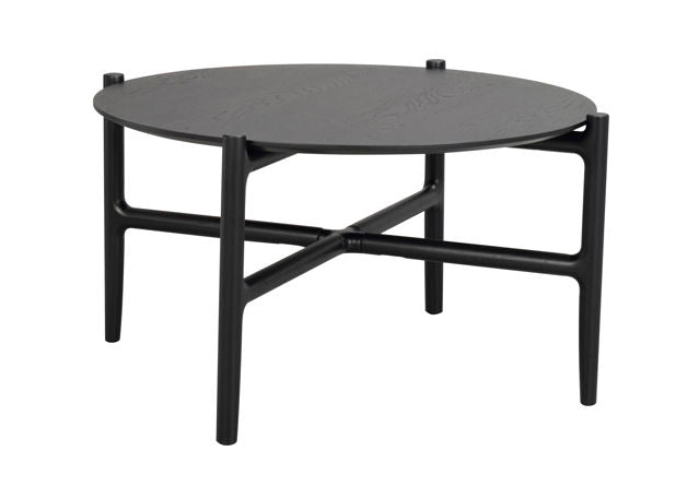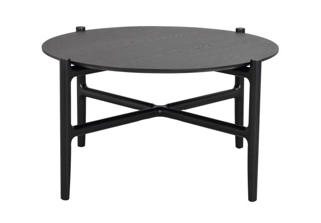 Holton round coffee table Ø80 cm has a table top in black lacquered oak veneer and a base of solid oak. The lacquered table surface makes the table easy to wipe off. Holton is a well-crafted series in Nordic design that fits in most homes. Available in several sizes and in oak. The series also includes a console table and a bookshelf.