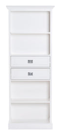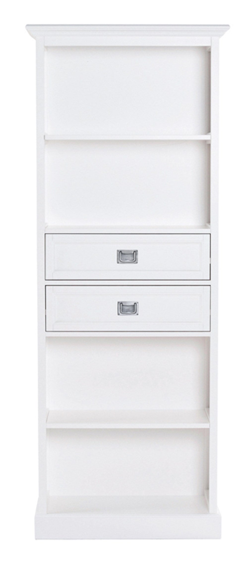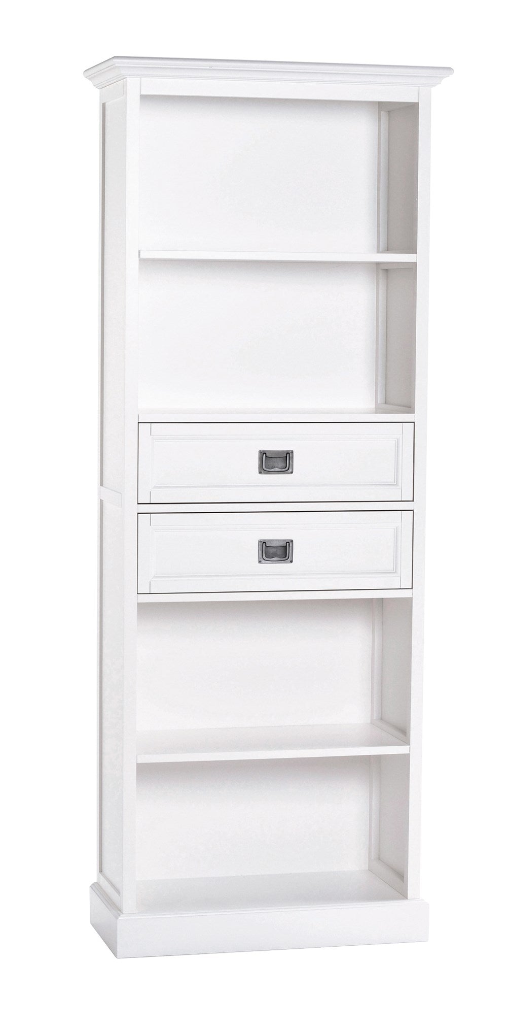 Classic bookcase with an elegant expression. White lacquered with solid birch frame. Four shelves and two drawers provide good storage. The bookshelf is part of our series Koster.