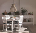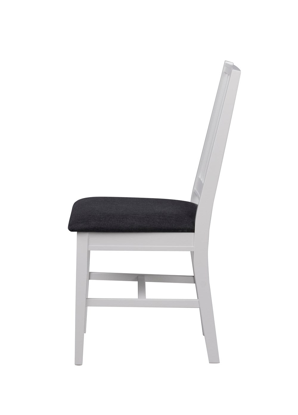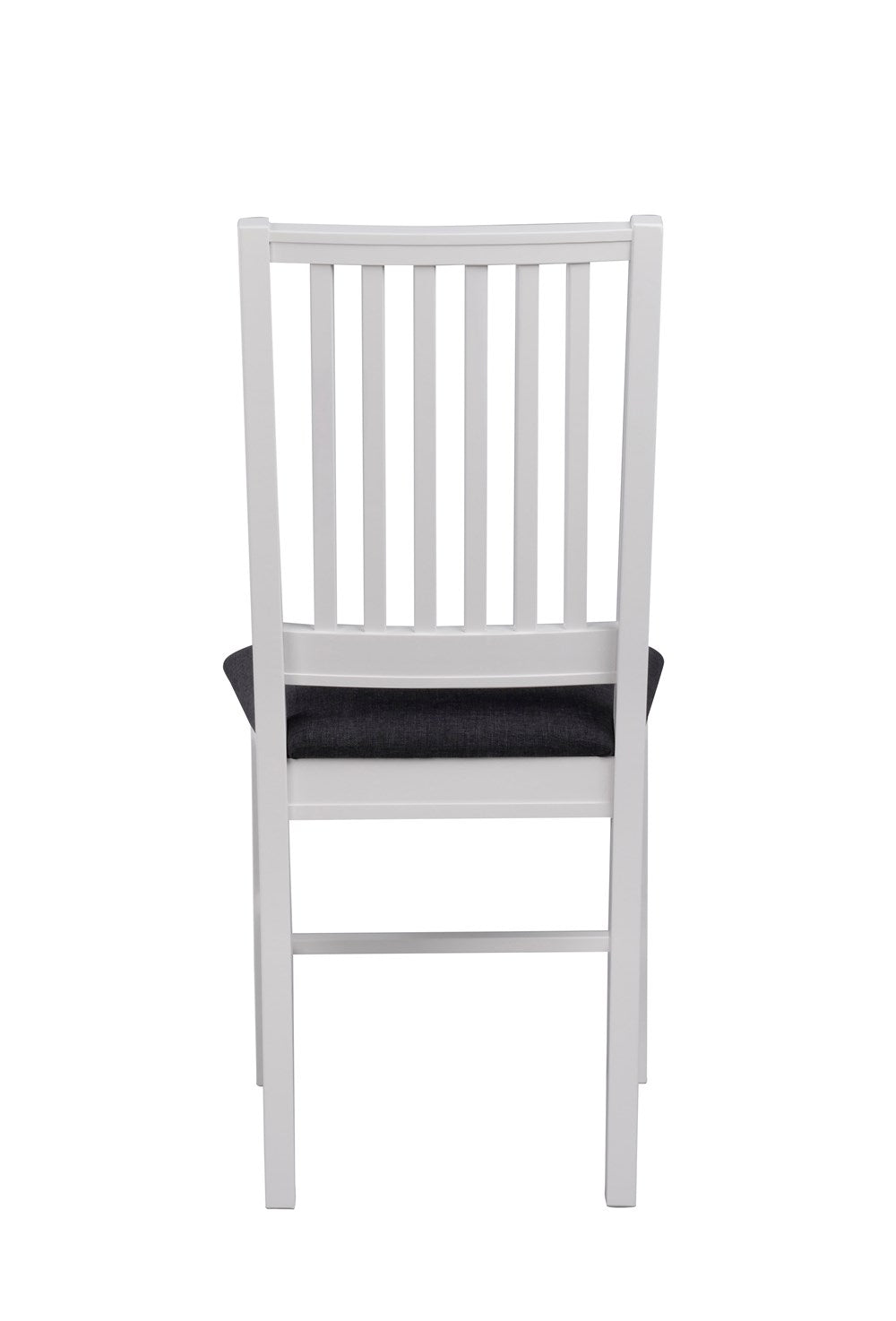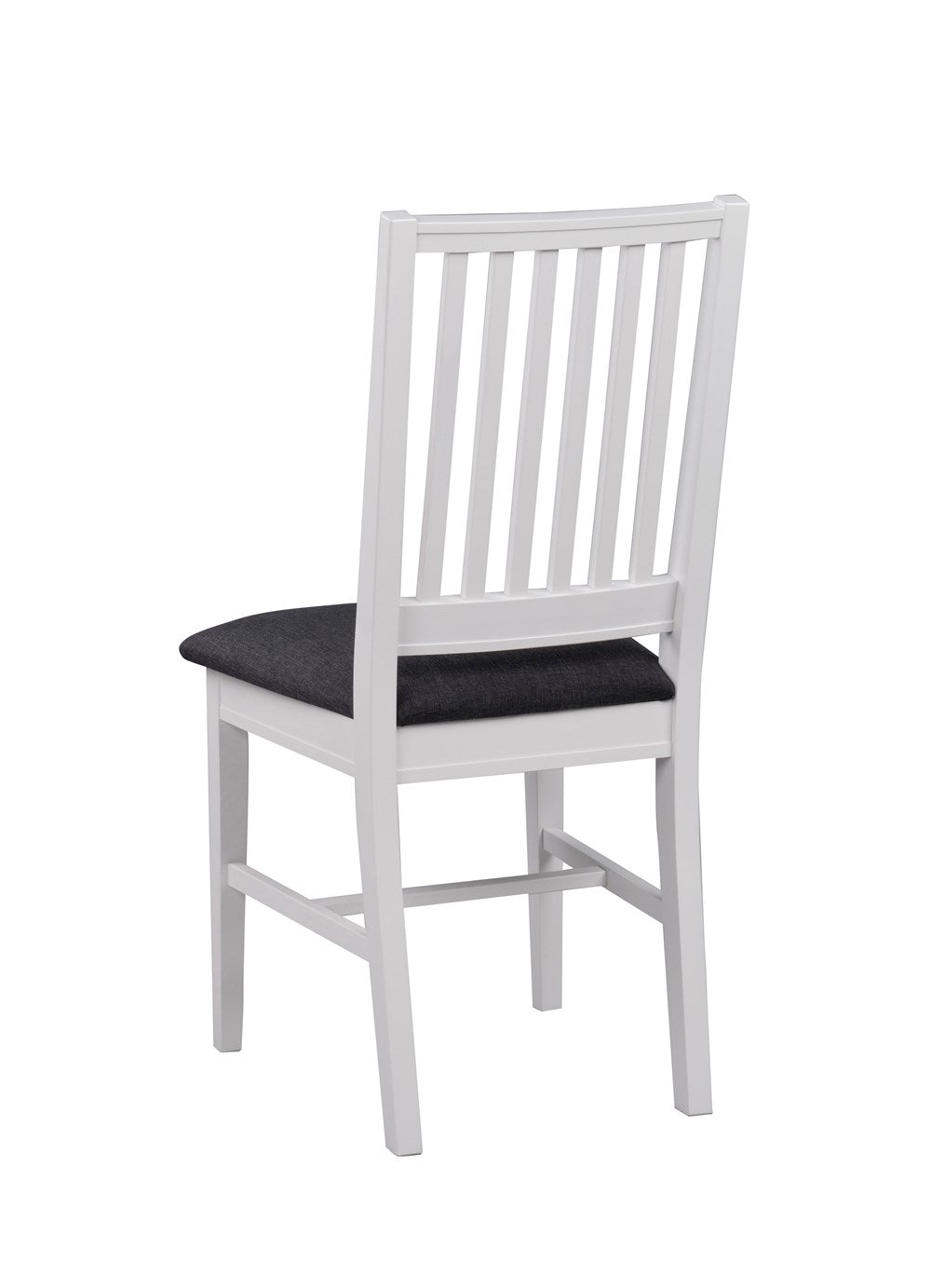 White lacquered wooden chair in classic and stylish design. Upholstered seat with gray fabric. Comes mounted. The chair is part of our series Koster.