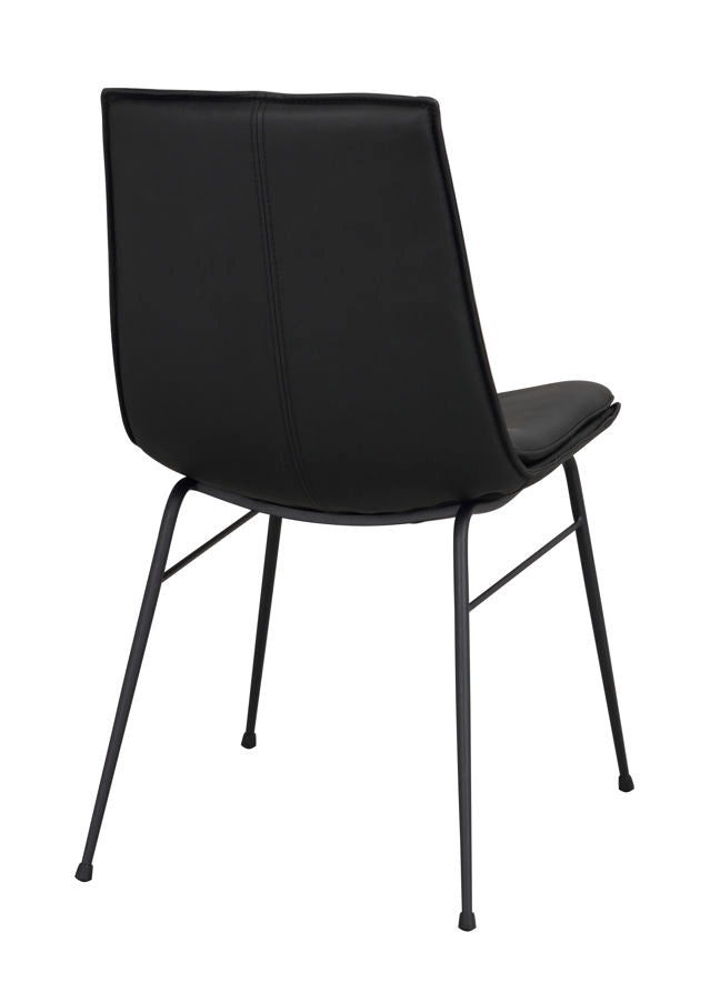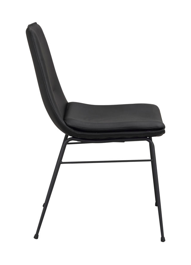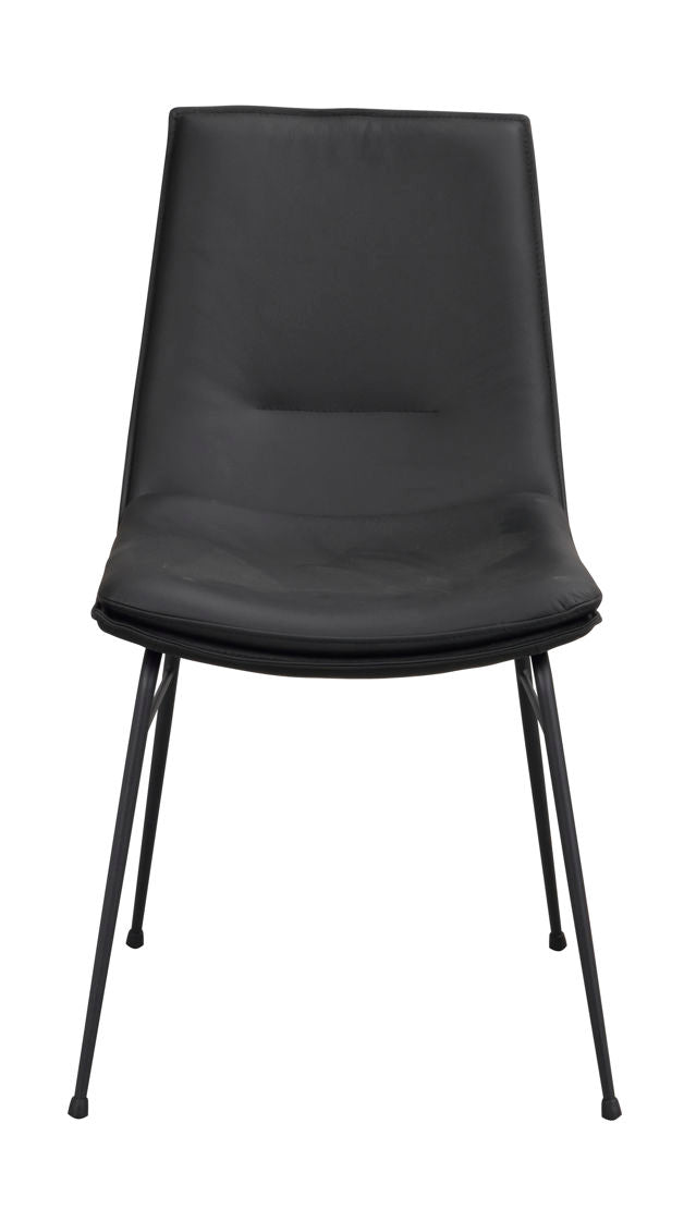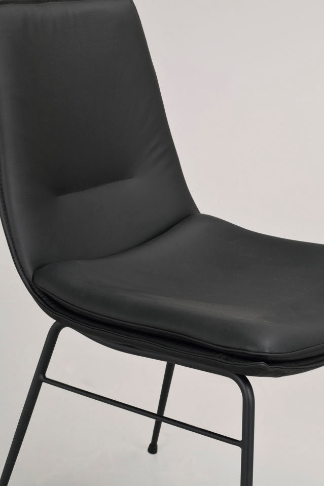 Lowell chair in black leather with fixed powder coated black metal legs. The chair is part of the flexible Lowell series where you design the chair the way you want it by choosing grey fabric or black leather, with or without armrests and swivel or fixed legs. The high quality, the comfortable seating and the stylish design make Lowell a chair you will use and love for many years to come.