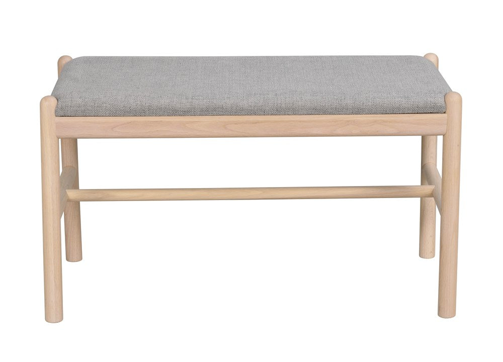 Milford seat bench in white pigmented oak with gray polyester fabric. Fits perfectly in the hall or bedroom. The bench is available in several colors and is part of our series Milford.