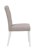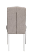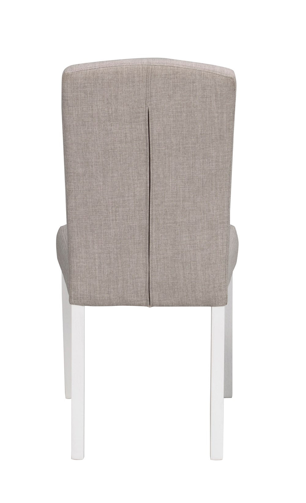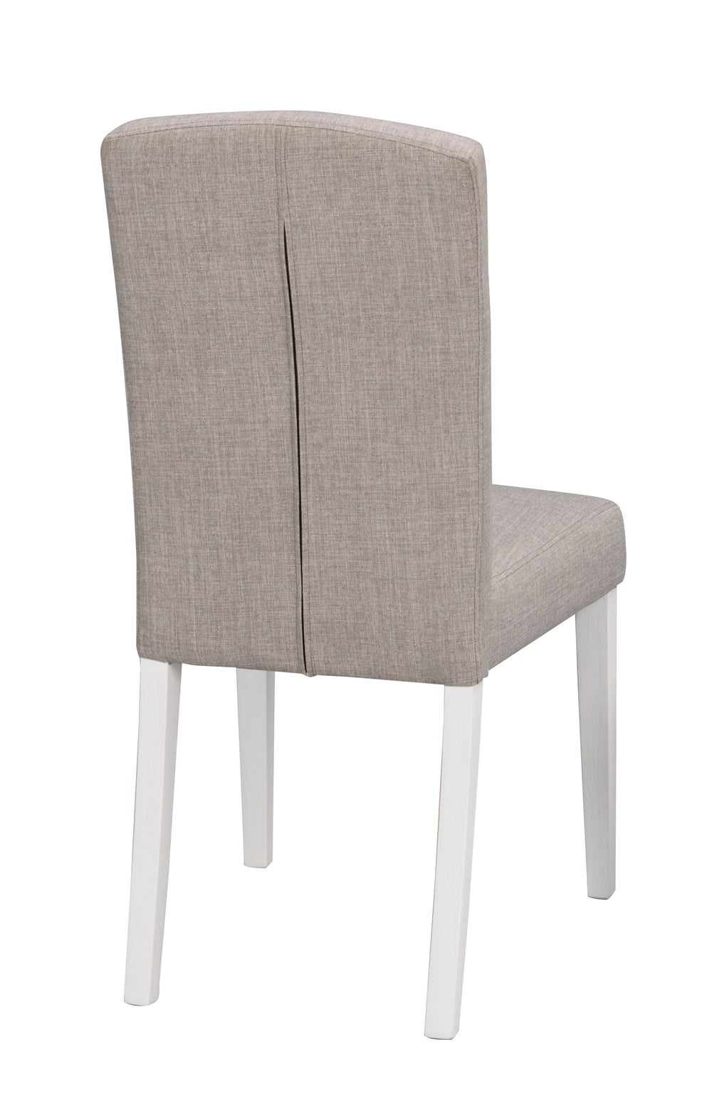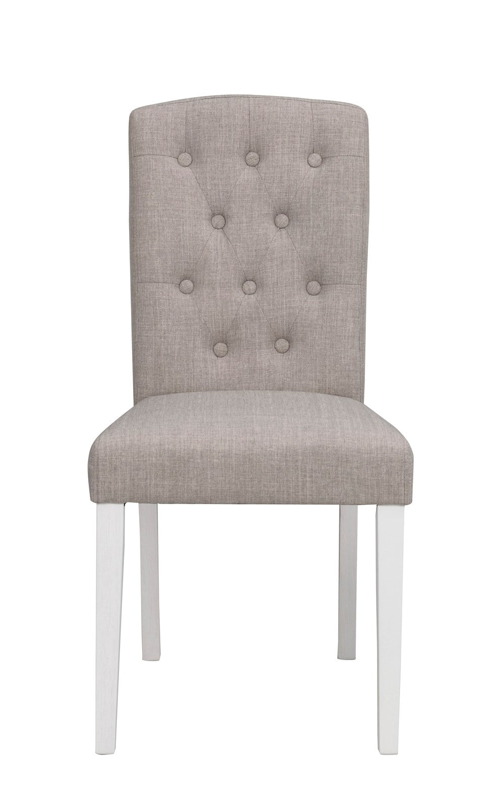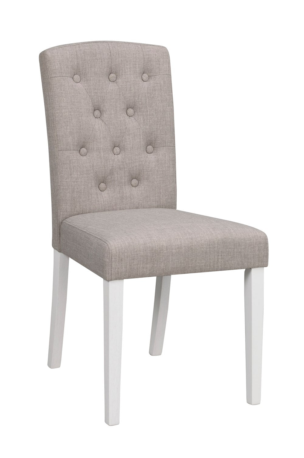 Narbonne chair in light gray. The chair has a padded seat with decorative buttons in the back. White painted legs in solid wood. The chair is part of our Narbonne series.
